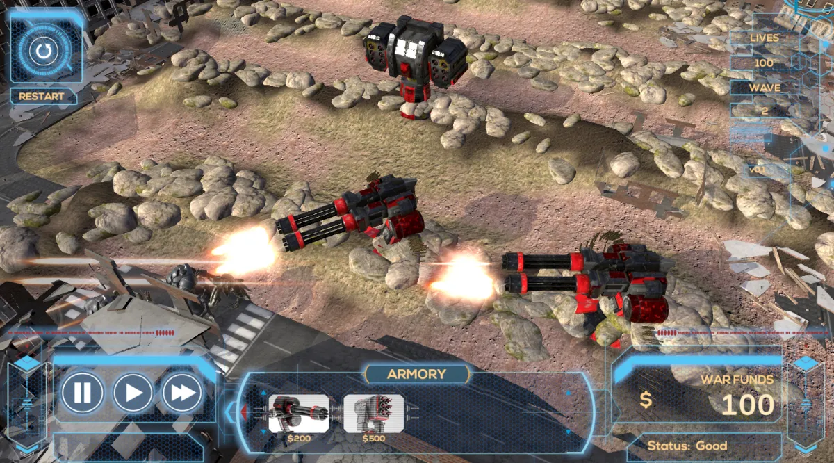 - Developed two turret types: one for targeting single enemies and another for attacking groups.